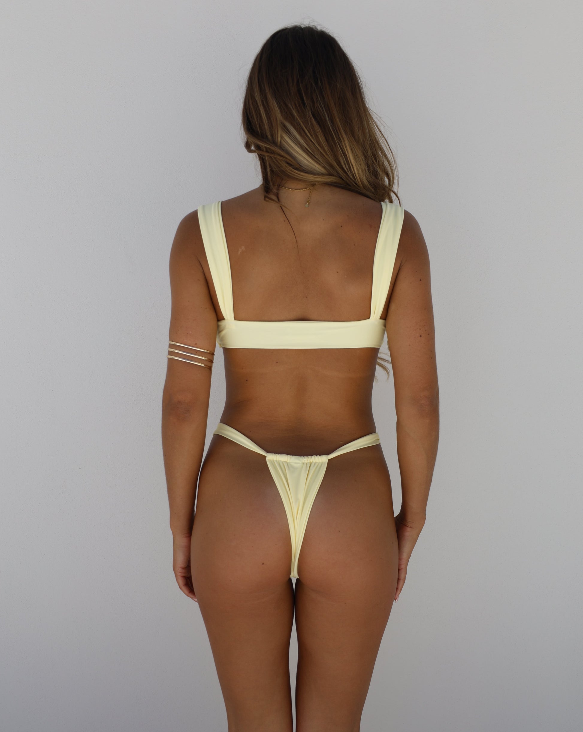 Meet Maui, the ruched detail lemon bikini designed to hug your unique figure so you feel summer body ready whether you’re lounging by the pool or living it up in a beach club.
